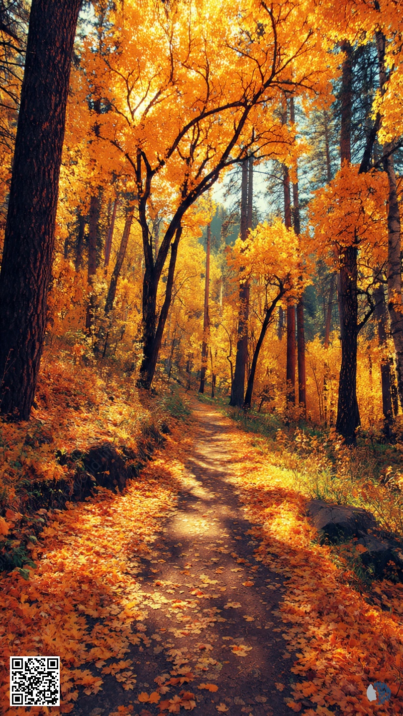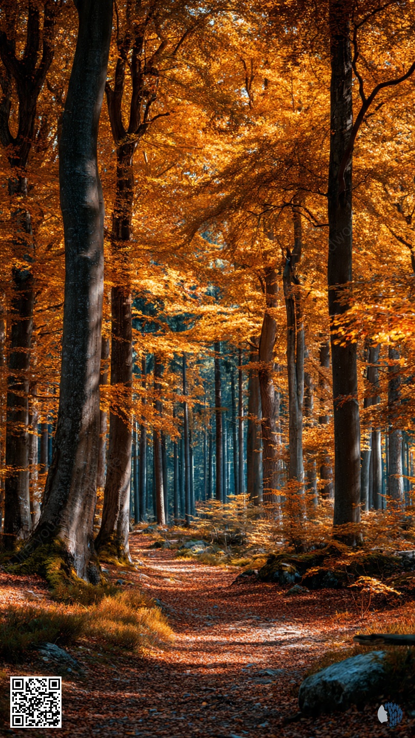 The forests glow with amber and copper; quiet paths and tall tree trunks transform every step into a warm, calm journey.