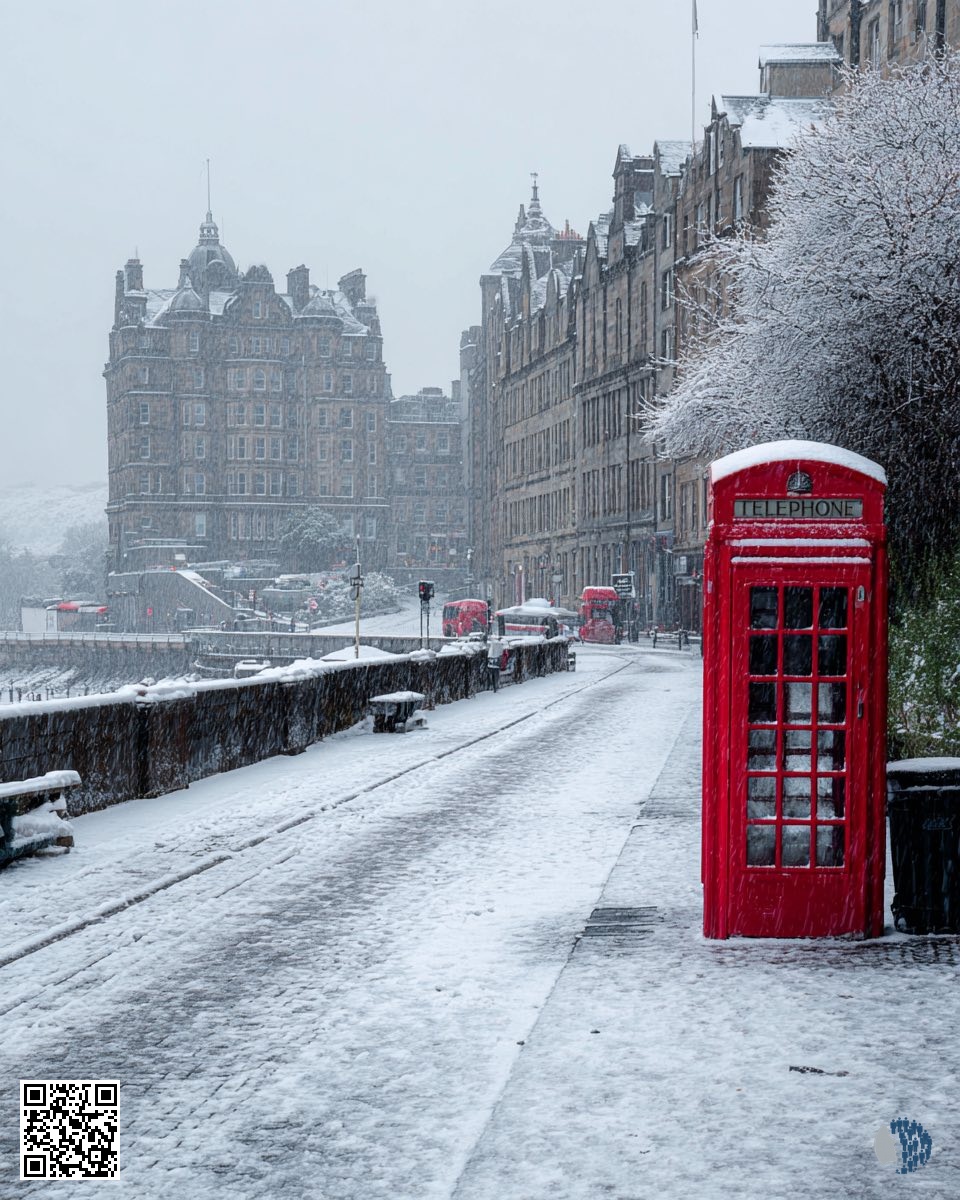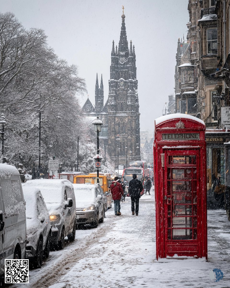 Էդինբուրգի ձյունածածկ փողոցները փայլում են խորհրդանշական կարմիր հեռախոսային խցիկների շուրջ՝ Հին քաղաքի աշտարակներ, մեղմ ձյուն և հանգիստ ձմեռային հմայք