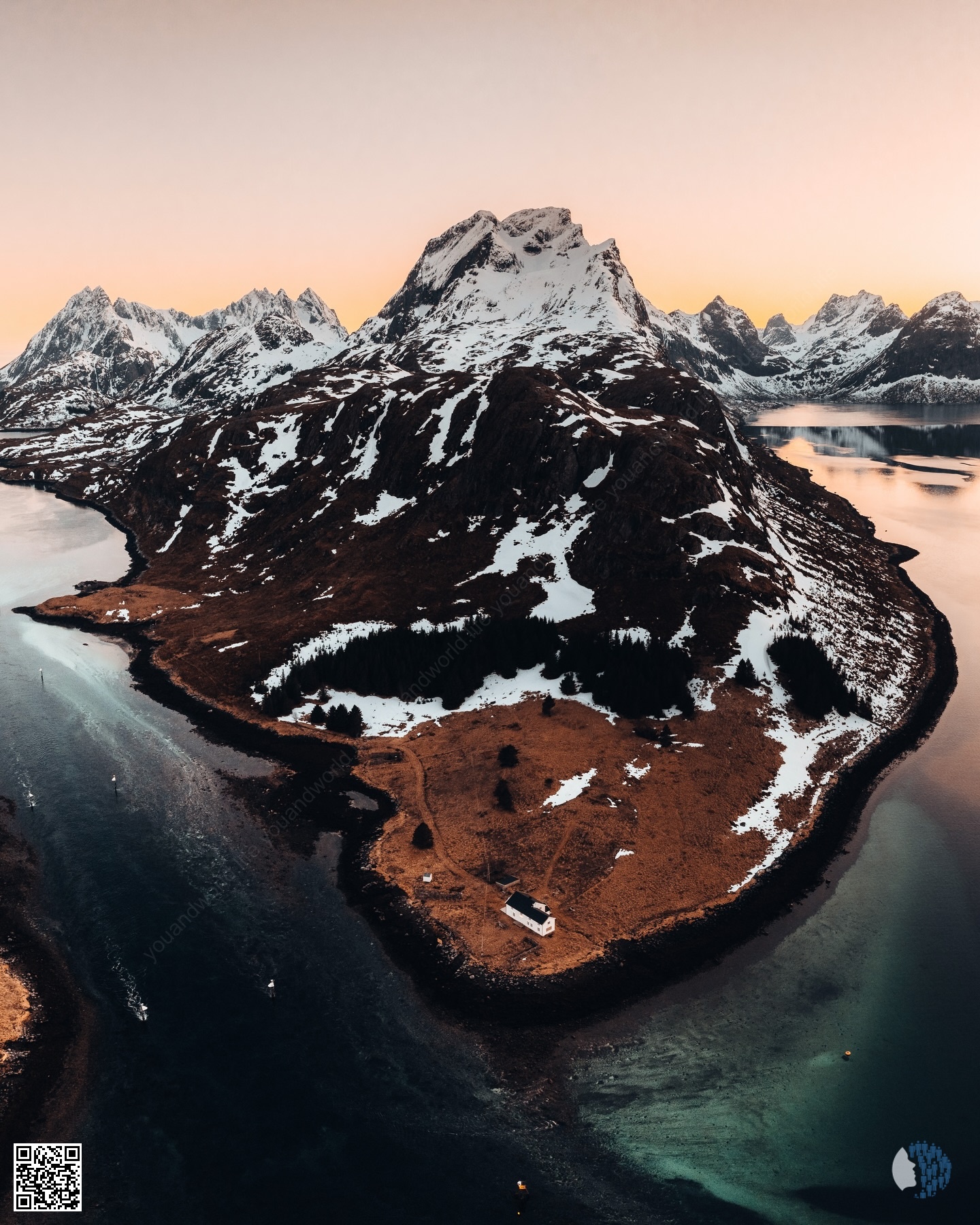 Ձմեռային լույս Լոֆոտենում | Ցածր ոսկեգույն արև, փիրուզագույն ֆիորդեր և ձյունածածկ գագաթներ՝ կինեմատոգրաֆիկ սկանդինավյան լանդշաֆտներ, որտեղ ձմեռը հանգիստ, թարմ և տաք երանգներ ունի։
