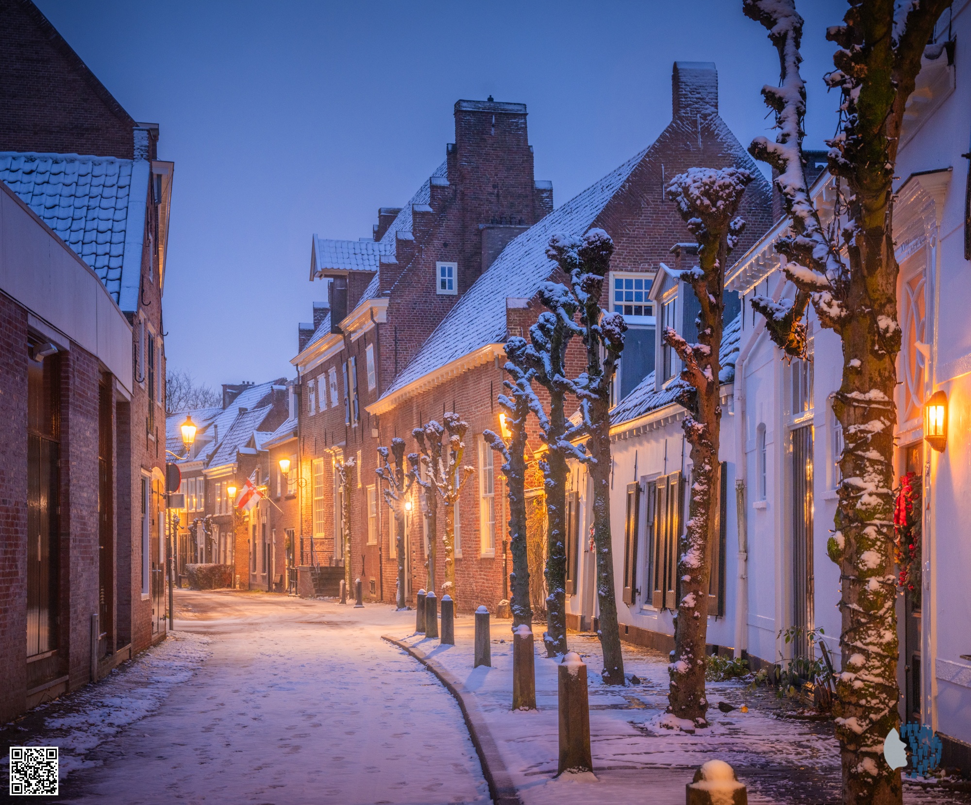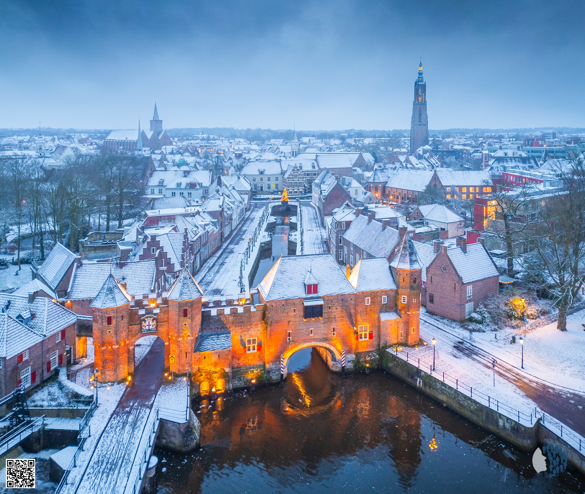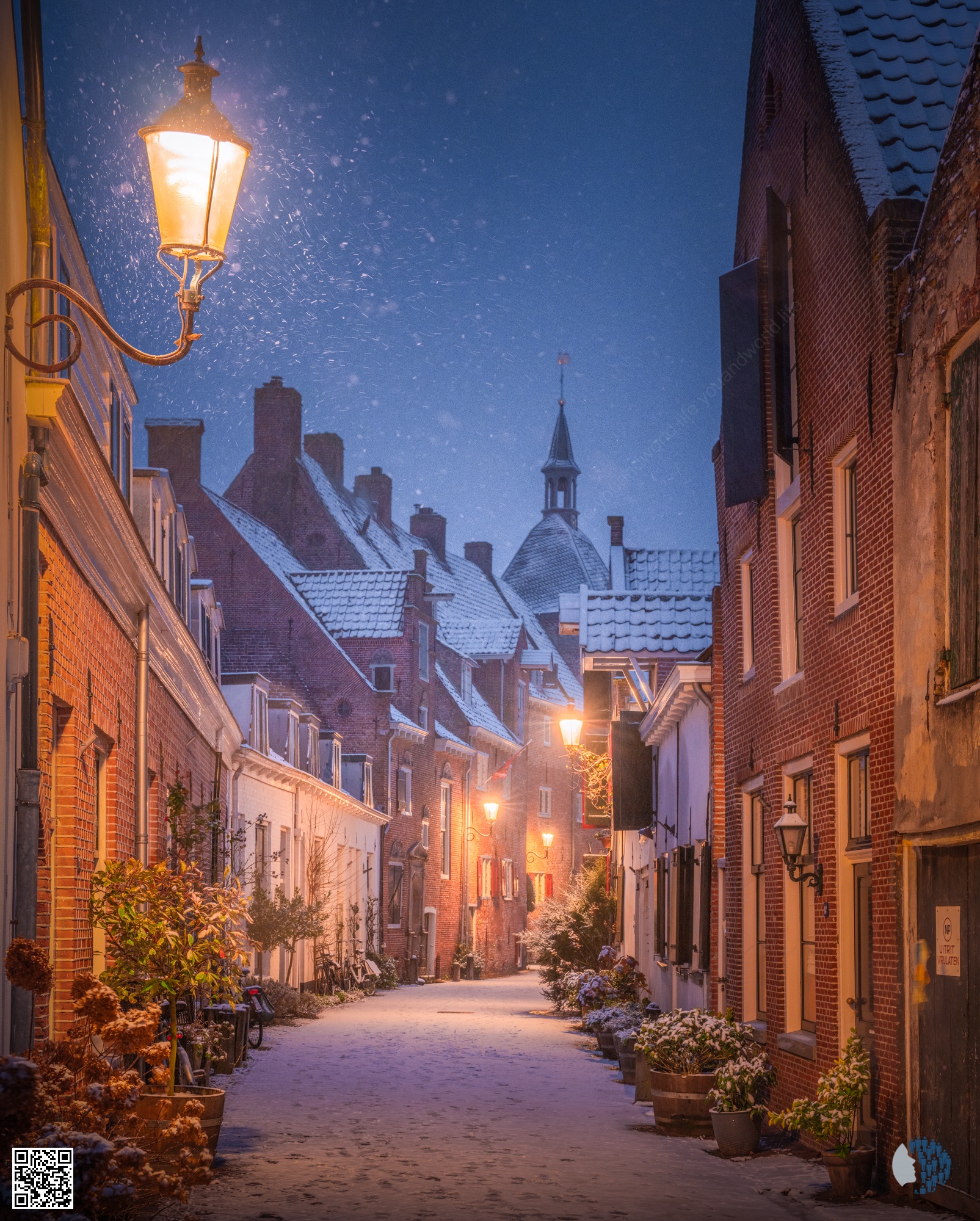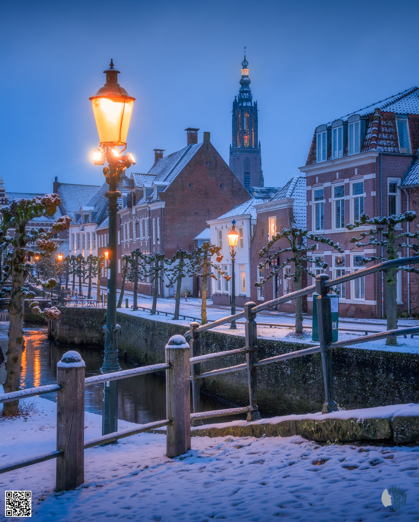 Ձյունառատ առավոտյան վաղ ժամերին Ամերսֆորտը վերածվում է խաղաղ ձմեռային բացիկի: Ձյան նուրբ շերտը ծածկում է քարե փողոցները՝ մեղմացնելով պատմական ճարտարապետության եզրերը և ստեղծելով խաղաղ մթնոլորտ: Ջրանցքների նուրբ կորերը, որոնք այժմ սպիտակ են, արտացոլում են լուսաբացի մեղմ երանգները՝ հրավիրելով խաղաղության և լռության զգացողություն: