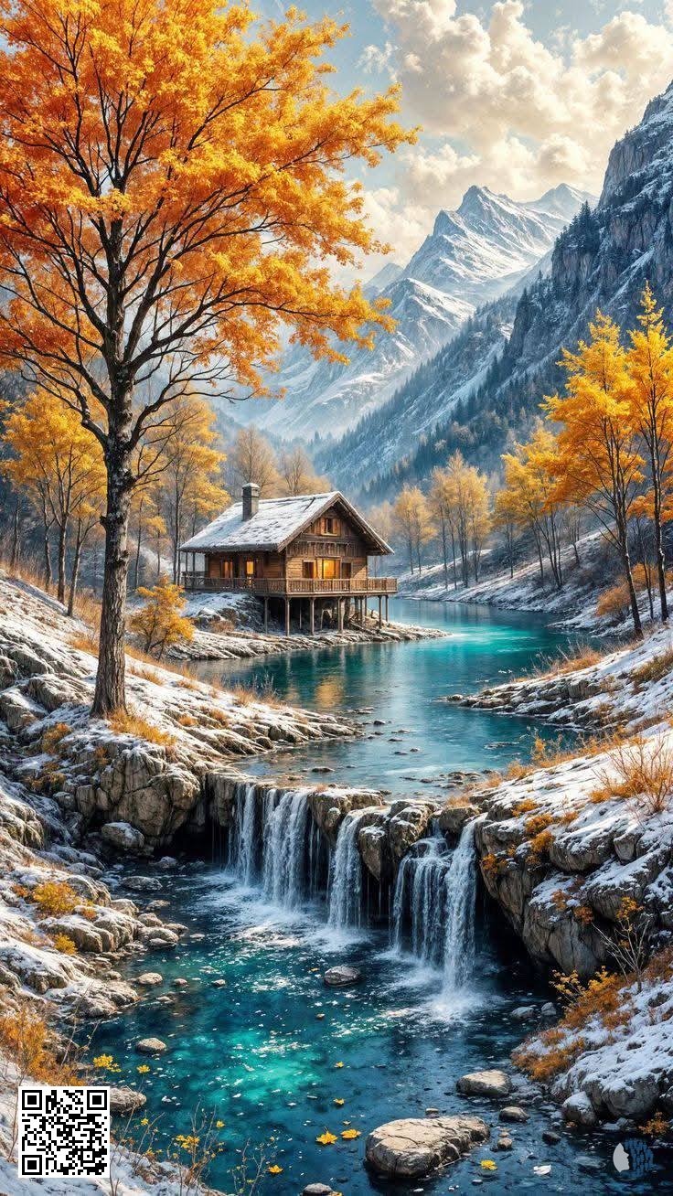 «Բնության սեզոնային խճանկարում» բացվում է վառ գոբելեն, որը ցուցադրում է տարբեր լանդշաֆտներում հանդիպող բազմազան գեղեցկությունը: Ձյունածածկ ալպյան խրճիթները առաջացնում են խաղաղ մենության զգացողություն, նրանց գեղջուկ հմայքը հակադրվում է ձմռան թարմ սպիտակությանը: Այս տեսարանի զով կապույտն ու սպիտակը հրավիրում են մտորումների մի պահի, կյանքի եռուզեռի մեջ դադարի, երբ մարդ պատկերացնում է ներսում ճռռացող կրակի ջերմությունը: