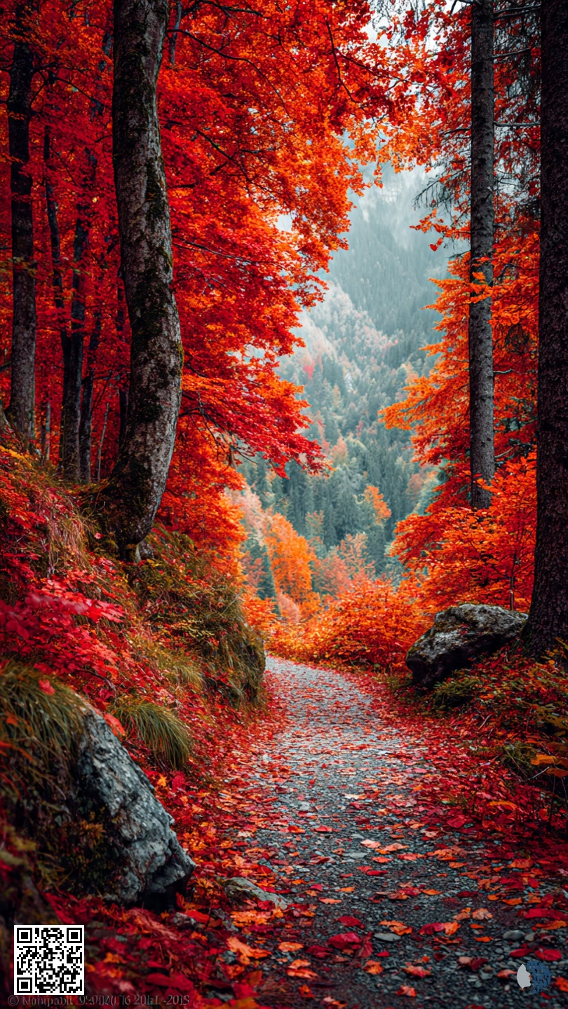 Անտառային եղանակներ, մեկ շնչով — անտառային տրամադրությունների վառ կոլաժ՝ աշնանային կարմիր արահետներ, ոսկեգույն տերևների փայլ, արևի լույսով լուսավորված կանաչ ծածկեր և զով կապույտ։