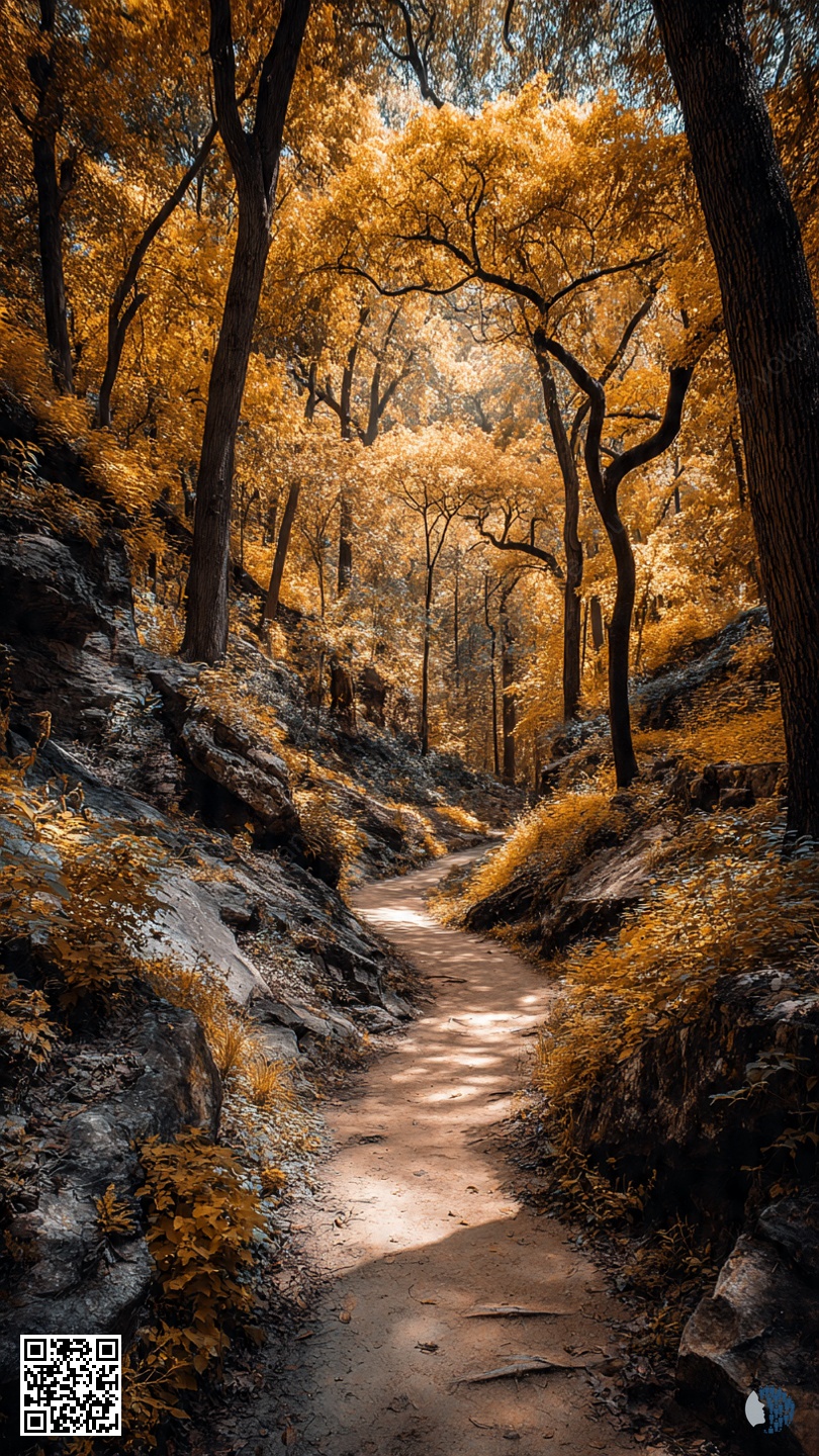 «Ոսկե աշնանային արահետները» ձեզ հրավիրում են թափառել արևով լուսավորված անտառներով, որոնք ճառագայթում են սաթի և պղնձի երանգներով: Լույսը թափանցում է ծառերի միջով՝ տաք լույս սփռելով ներքևի արահետների վրա՝ ստեղծելով գույների մի գոբելեն, որը գրավում է ուսումնասիրություններ: Այս հանգիստ արահետներով յուրաքանչյուր քայլը նուրբ գրկախառնություն է, որտեղ օդը ներծծվում է ընկած տերևների հողային բույրով և գլխավերևում գտնվող ճյուղերի մեղմ շրշյունով: