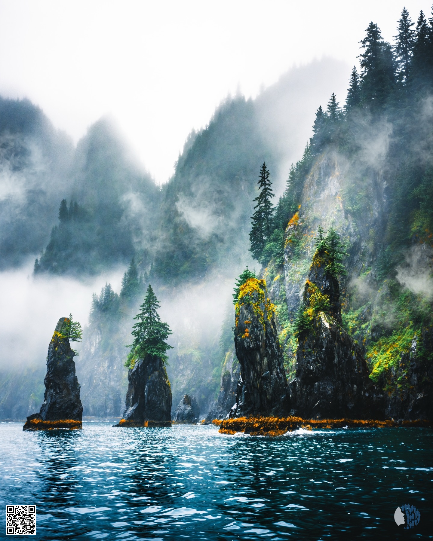 Ալյասկայի լանդշաֆտները բացվում են ինչպես մի մեծ գոբելեն, որը հյուսված է մշուշոտ գագաթների և ժայռոտ ափագծերի թելերից: Յուրաքանչյուր լուսանկար արտացոլում է այս անծայրածիր անապատի խիստ գեղեցկությունը, որտեղ բարձր լեռները ծակում են երկինքը, իսկ դրանց գագաթները հաճախ ծածկված են մառախուղի քողով: Լույսի և ստվերի փոխազդեցությունը ստեղծում է դինամիկ տեսողական փորձառություն՝ ընդգծելով ժայռոտ ժայռերի հյուսվածքները և վերևում ծույլորեն լողացող ամպերի մեղմությունը: