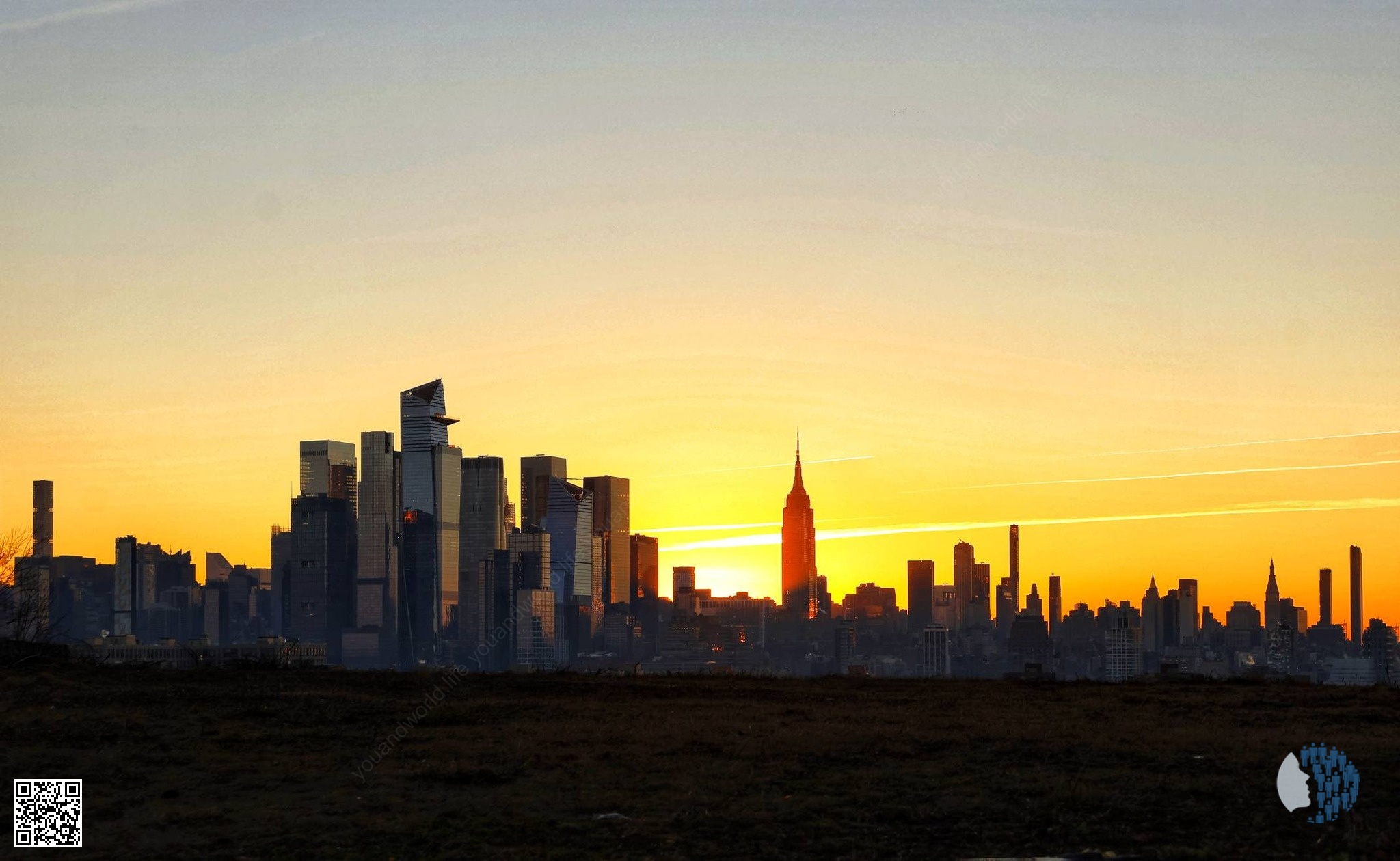 As the first light of day breaks, the Empire State Building stands tall against a canvas of vibrant oranges and soft yellows. Golden rays spill across the New York City skyline, transforming the urban landscape into a scene of warmth and possibility. The iconic silhouette of the building, framed by the awakening city, captures the essence of dawn in a metropolis that never sleeps.