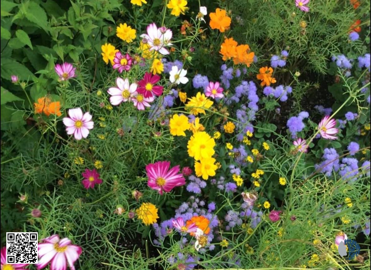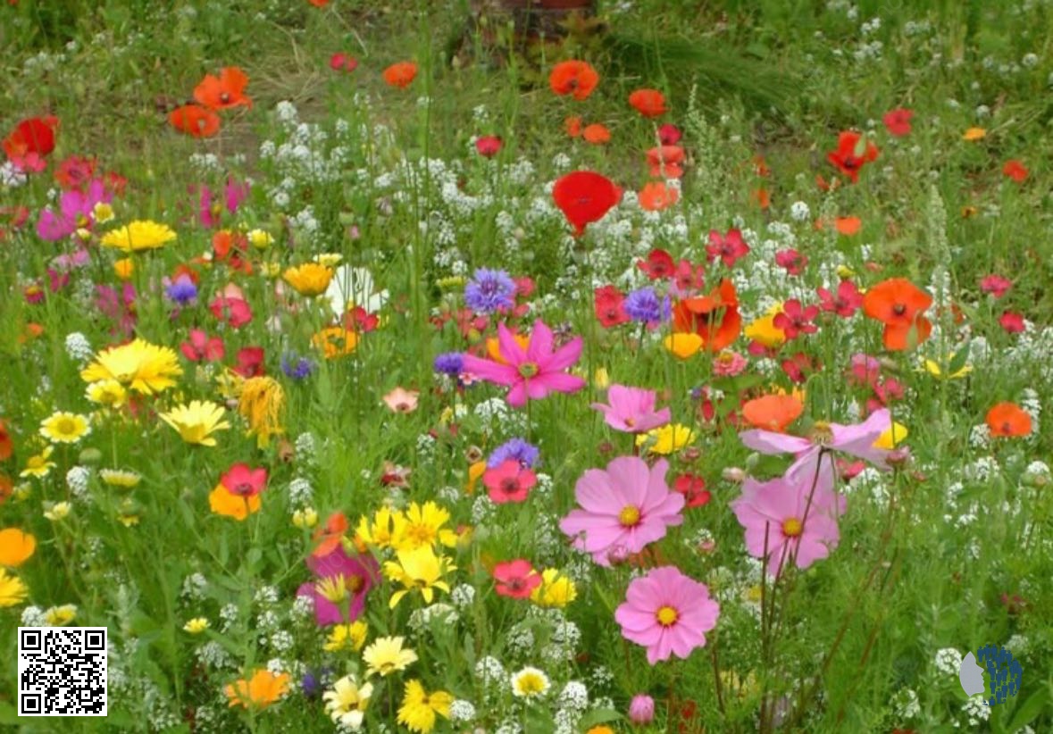 Վառ գույների և նուրբ պաստելային գույների վայրի ծաղիկների վառ խառնուրդը ստեղծում է ջերմությամբ, գեղեցկությամբ և ուրախ էներգիայով լի աշխույժ այգի։